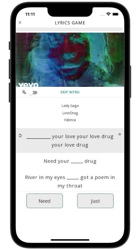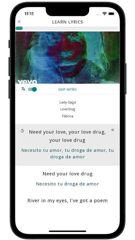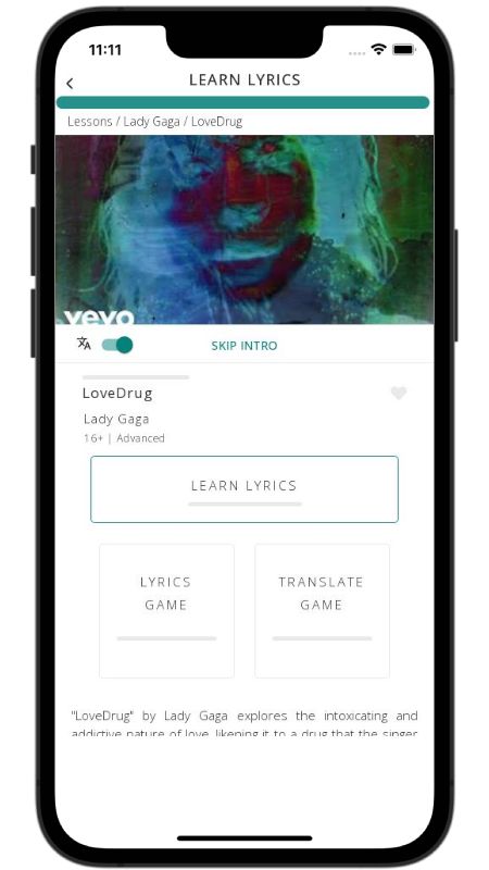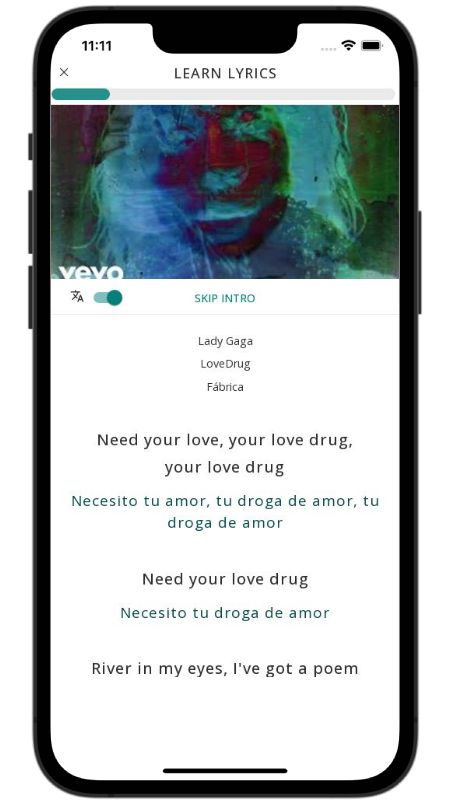 In addition to reading lyric translations, you can now learn English with music and lyrics from your favorite artists.