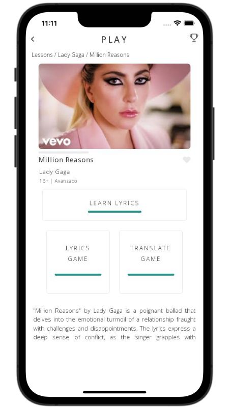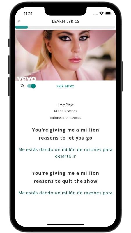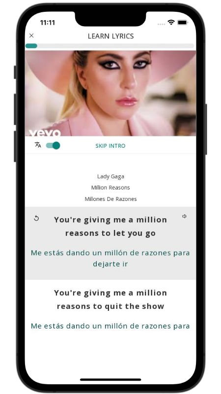 In addition to reading lyric translations, you can now learn English with music and lyrics from your favorite artists.