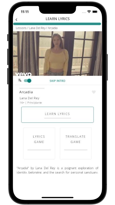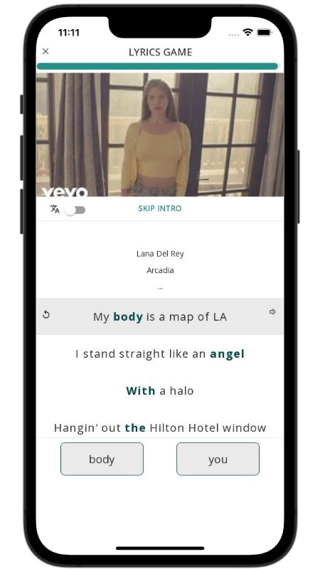 In addition to reading lyric translations, you can now learn English with music and lyrics from your favorite artists.