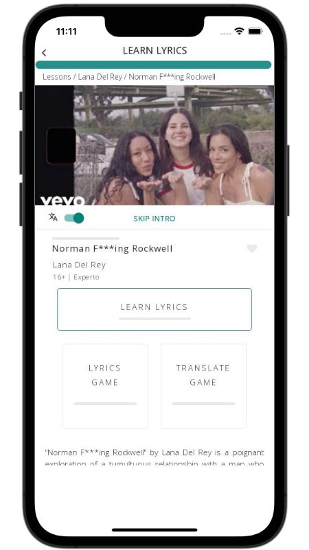 In addition to reading lyric translations, you can now learn English with music and lyrics from your favorite artists.
