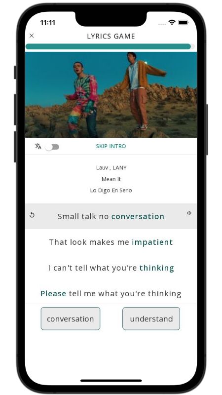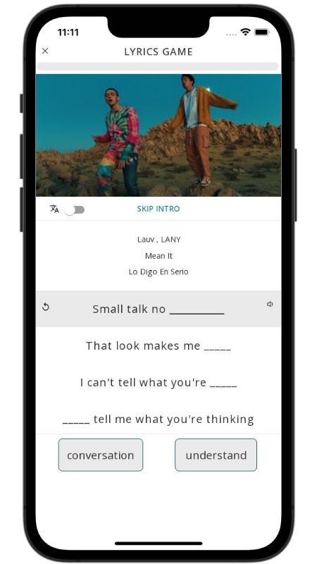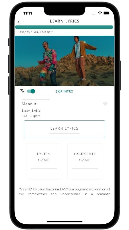 In addition to reading lyric translations, you can now learn English with music and lyrics from your favorite artists.