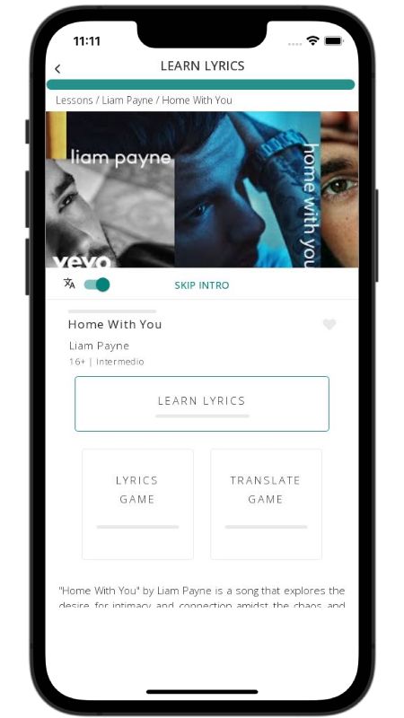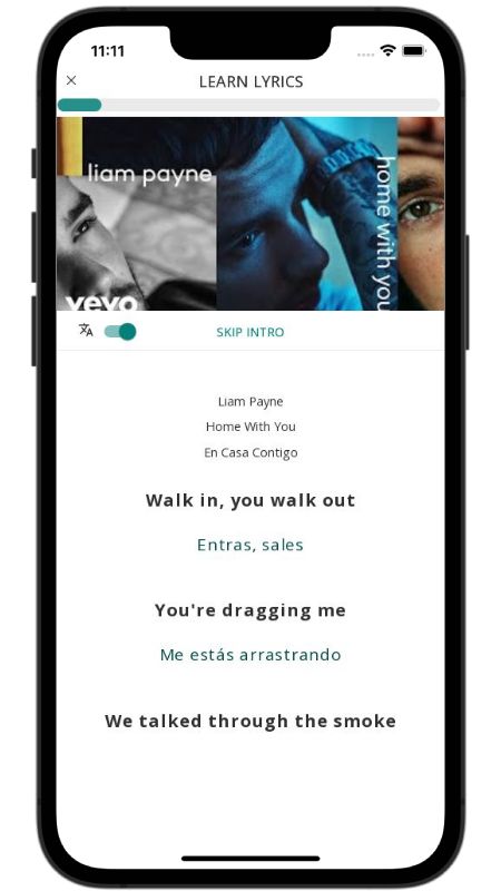 In addition to reading lyric translations, you can now learn English with music and lyrics from your favorite artists.