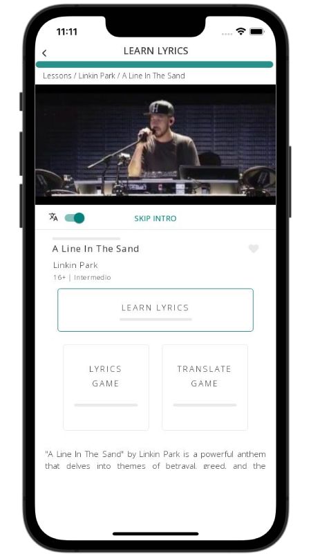 In addition to reading lyric translations, you can now learn English with music and lyrics from your favorite artists.
