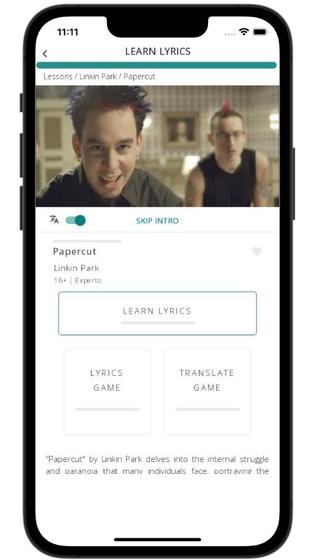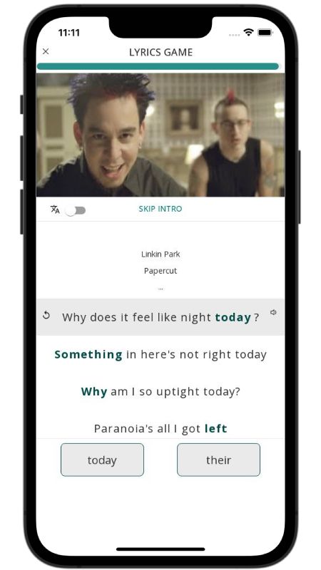 In addition to reading lyric translations, you can now learn English with music and lyrics from your favorite artists.