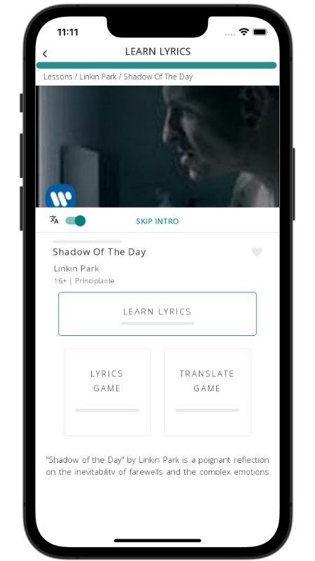 In addition to reading lyric translations, you can now learn English with music and lyrics from your favorite artists.