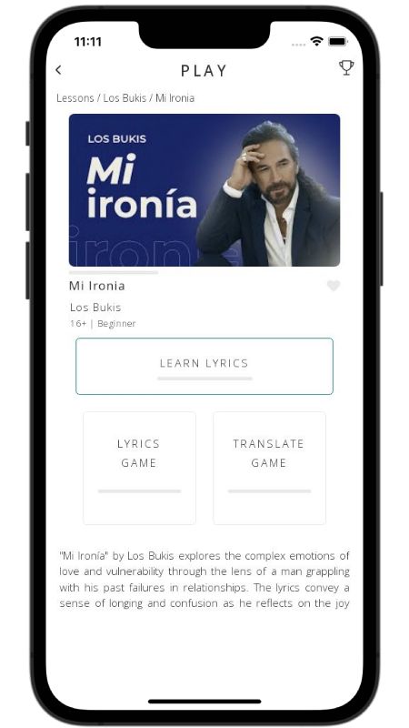 In addition to reading lyric translations, you can now learn Spanish with music and lyrics from your favorite artists.
