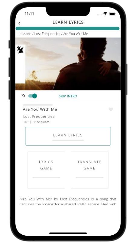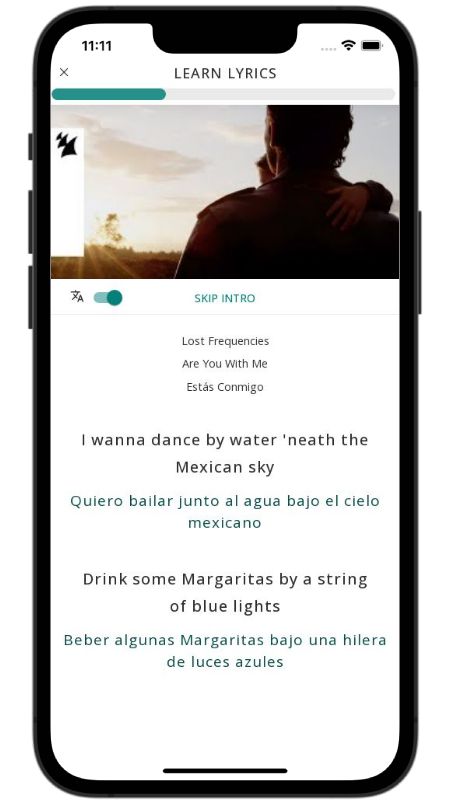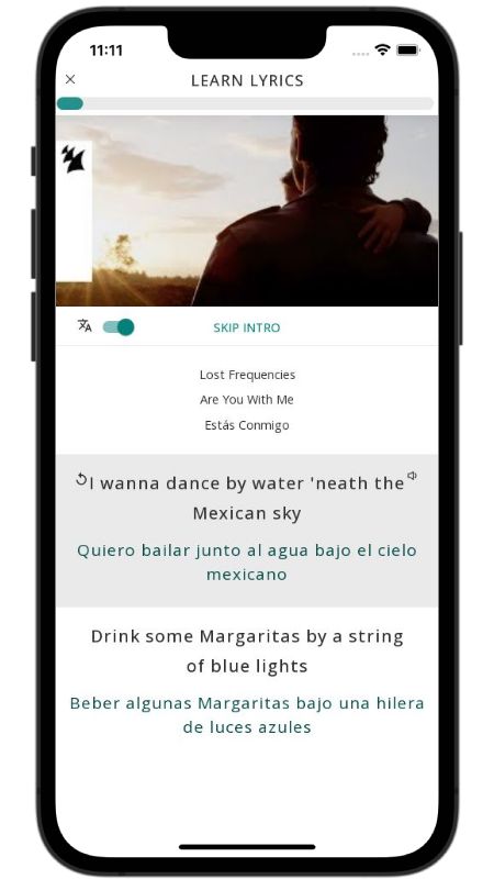 In addition to reading lyric translations, you can now learn English with music and lyrics from your favorite artists.