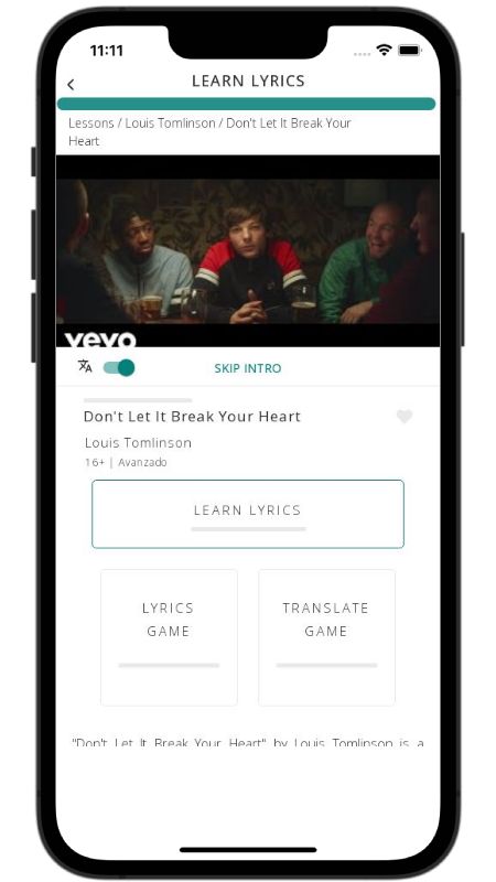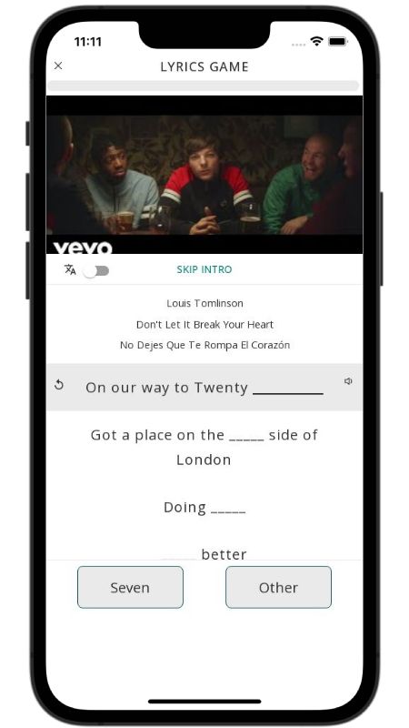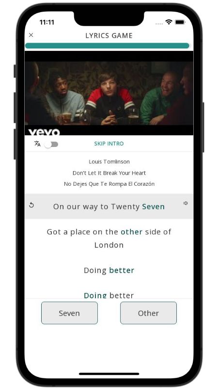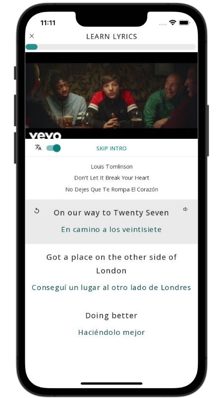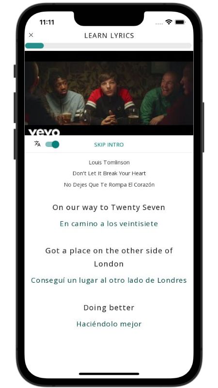 In addition to reading lyric translations, you can now learn English with music and lyrics from your favorite artists.