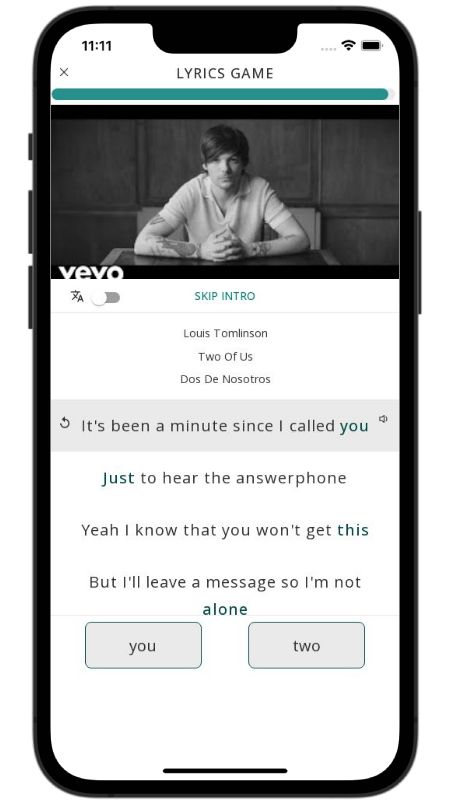 In addition to reading lyric translations, you can now learn English with music and lyrics from your favorite artists.