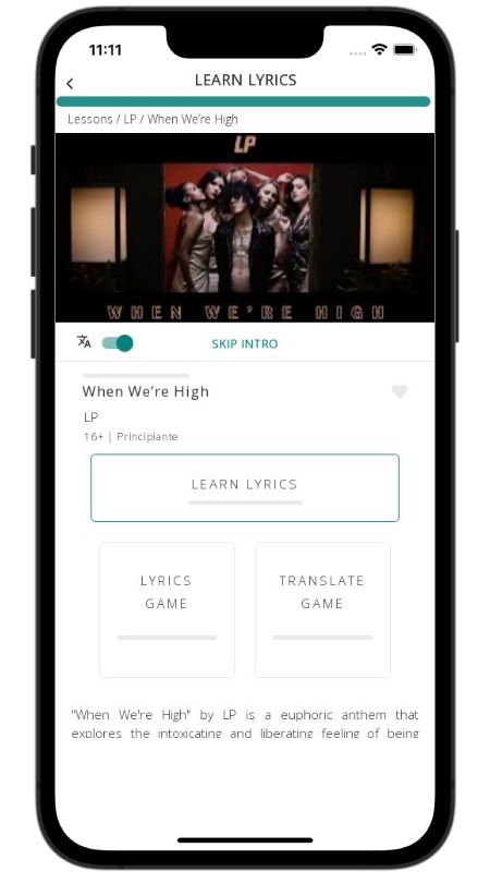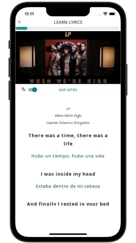 In addition to reading lyric translations, you can now learn English with music and lyrics from your favorite artists.