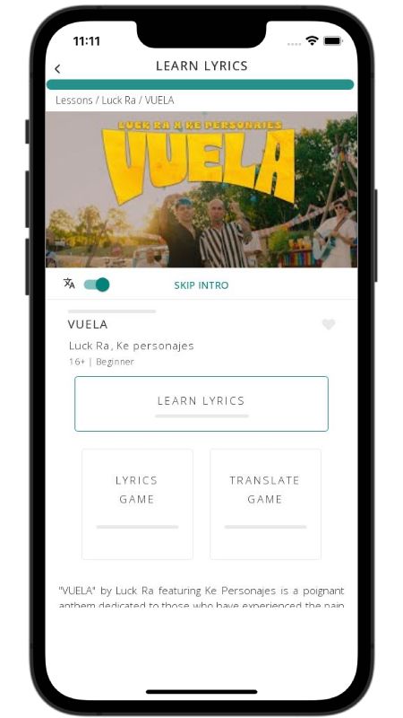 In addition to reading lyric translations, you can now learn Spanish with music and lyrics from your favorite artists.