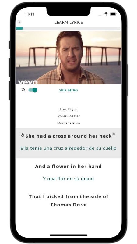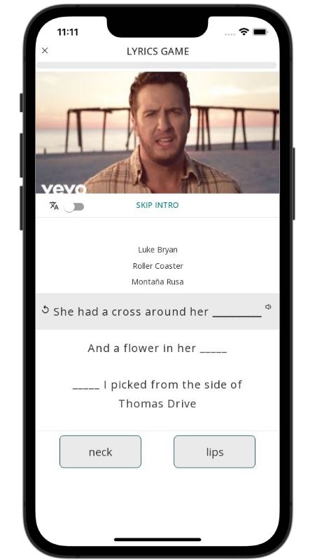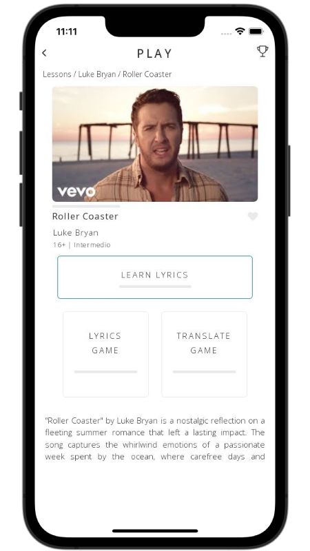 In addition to reading lyric translations, you can now learn English with music and lyrics from your favorite artists.