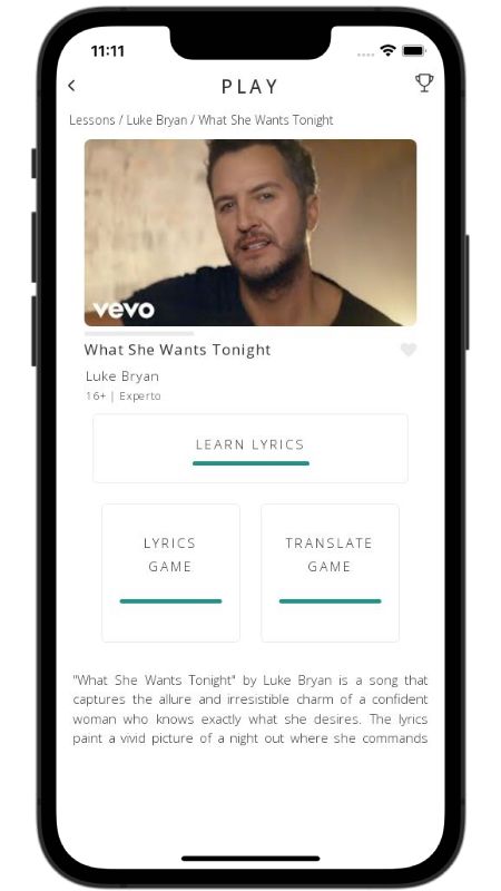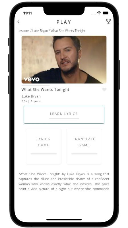 In addition to reading lyric translations, you can now learn English with music and lyrics from your favorite artists.