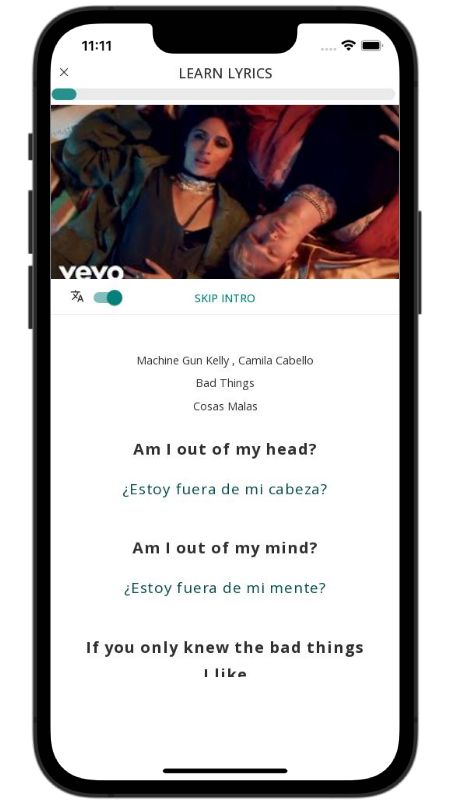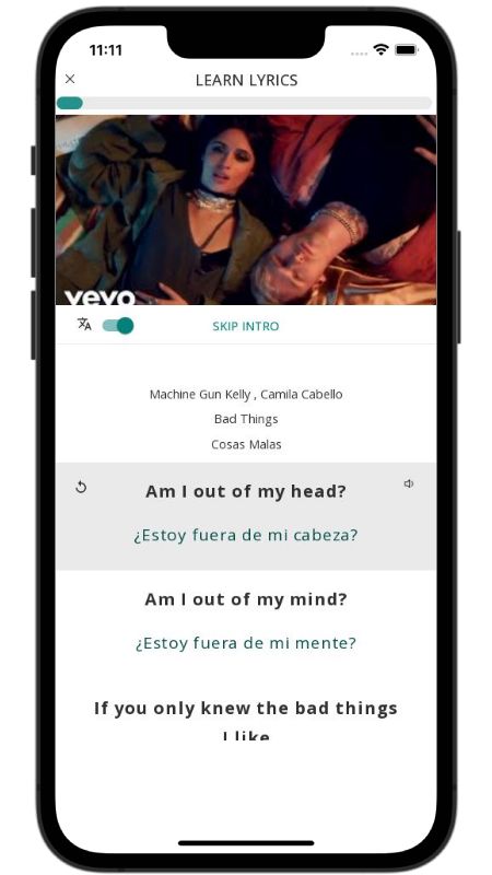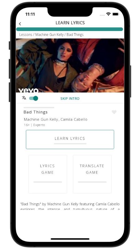 In addition to reading lyric translations, you can now learn English with music and lyrics from your favorite artists.