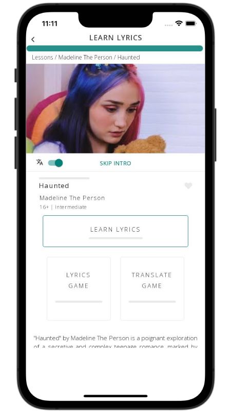 In addition to reading lyric translations, you can now learn English with music and lyrics from your favorite artists.