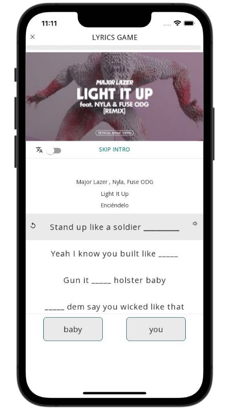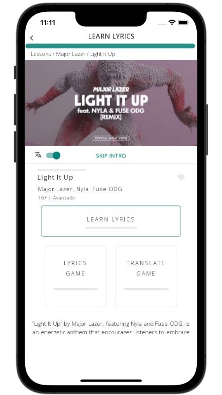 In addition to reading lyric translations, you can now learn English with music and lyrics from your favorite artists.