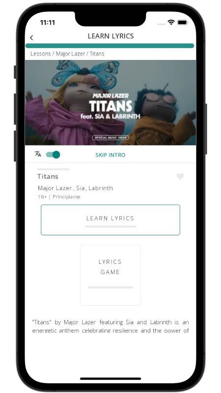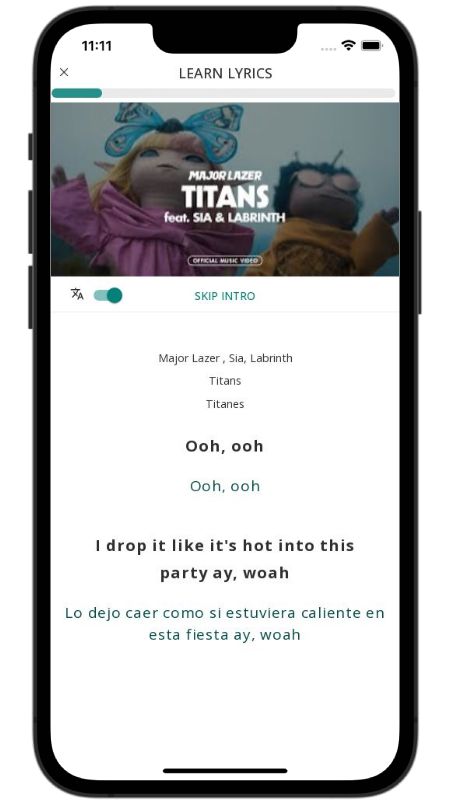 In addition to reading lyric translations, you can now learn English with music and lyrics from your favorite artists.