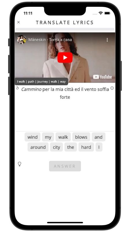 In addition to reading lyric translations, you can now learn Italian with music and lyrics from your favorite artists.