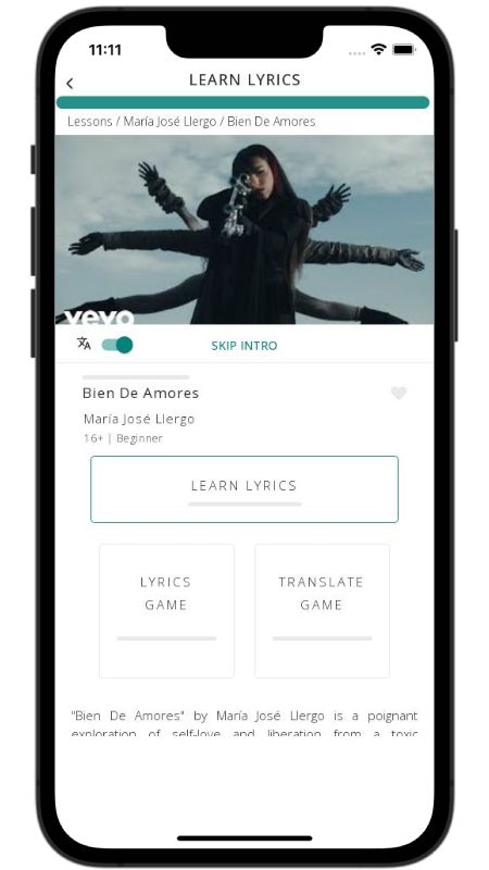 In addition to reading lyric translations, you can now learn Spanish with music and lyrics from your favorite artists.
