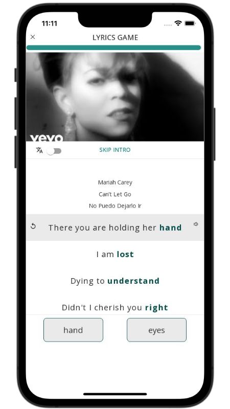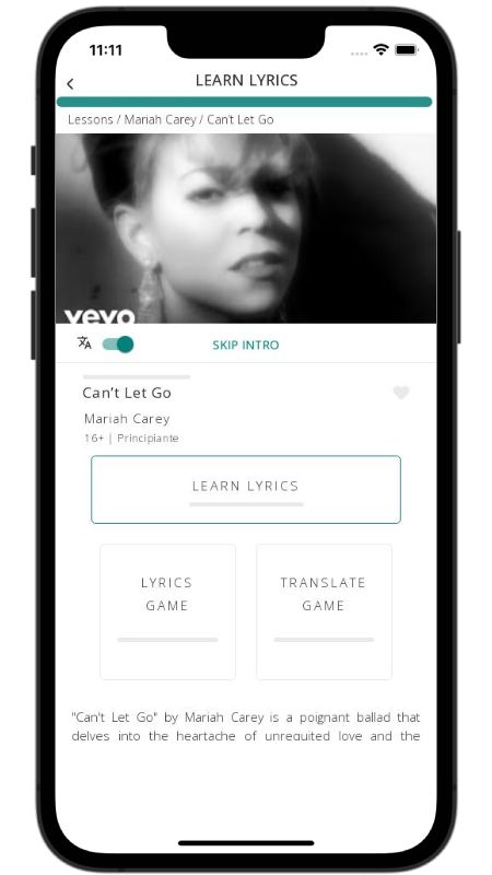 In addition to reading lyric translations, you can now learn English with music and lyrics from your favorite artists.