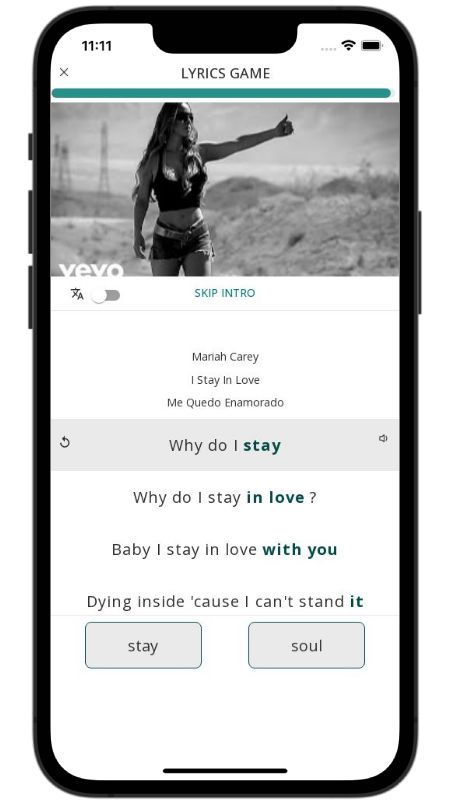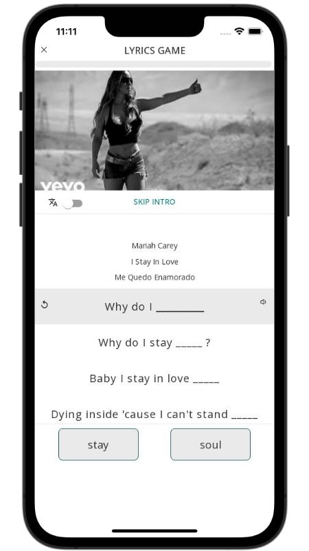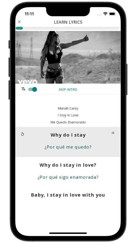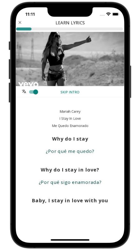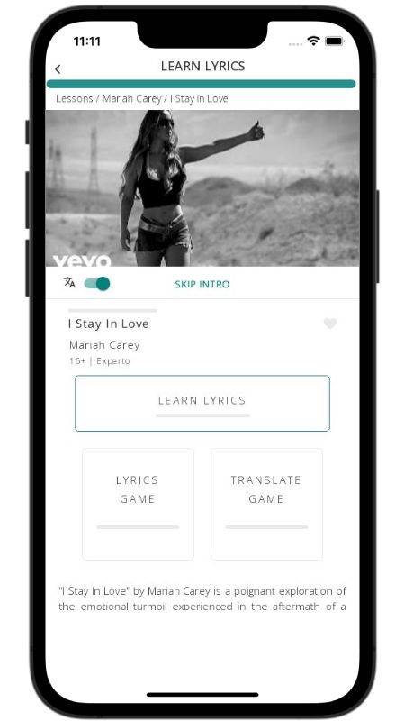 In addition to reading lyric translations, you can now learn English with music and lyrics from your favorite artists.