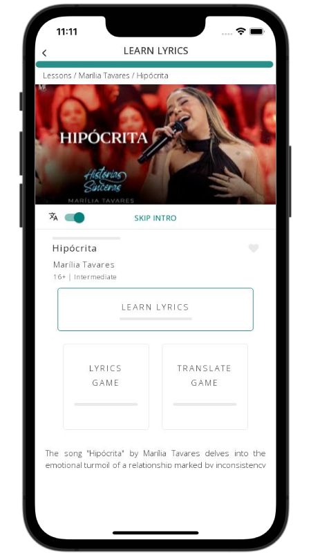 In addition to reading lyric translations, you can now learn Portuguese with music and lyrics from your favorite artists.