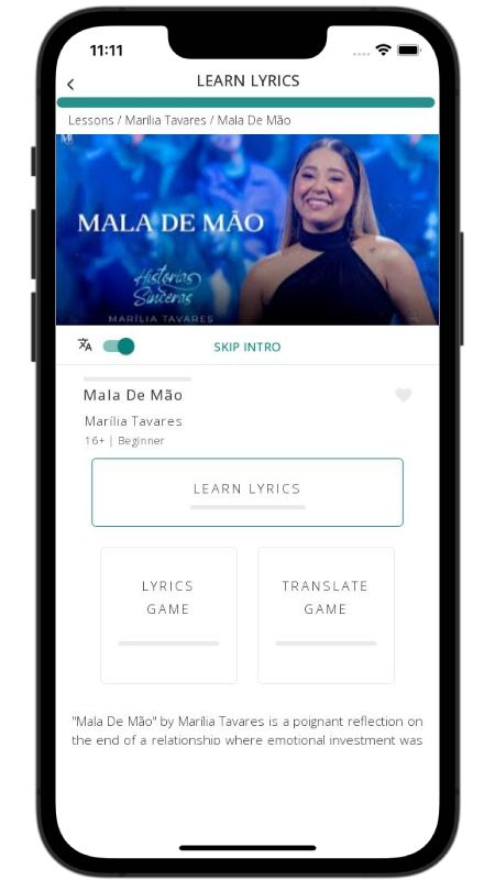 In addition to reading lyric translations, you can now learn Portuguese with music and lyrics from your favorite artists.