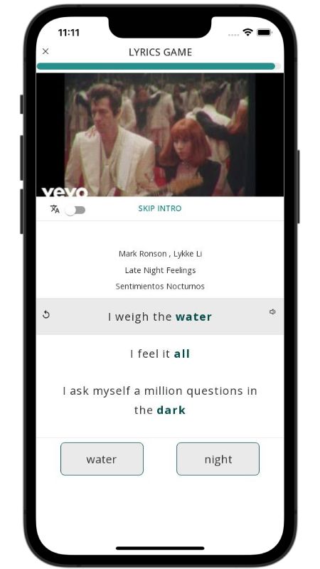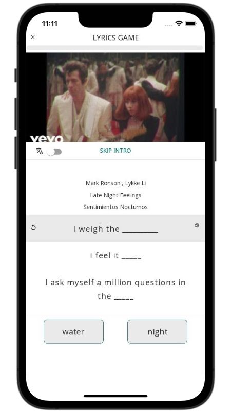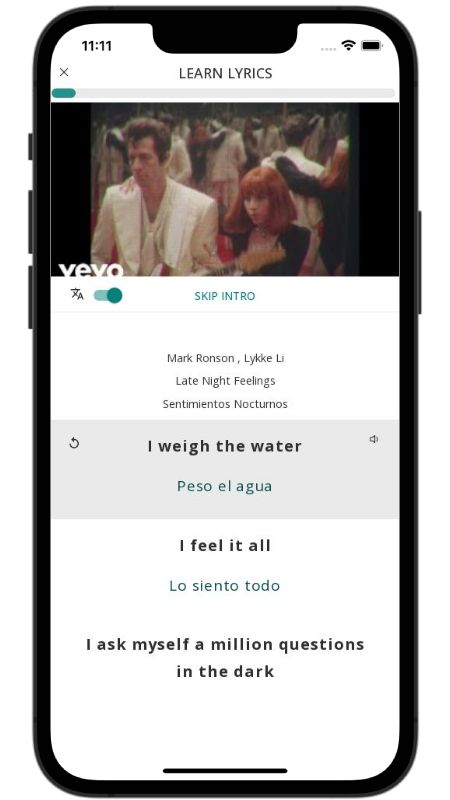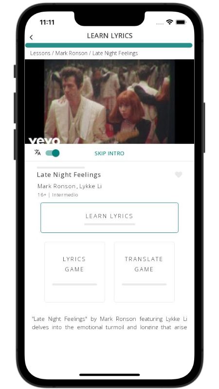 In addition to reading lyric translations, you can now learn English with music and lyrics from your favorite artists.
