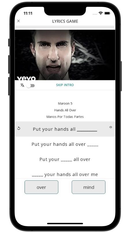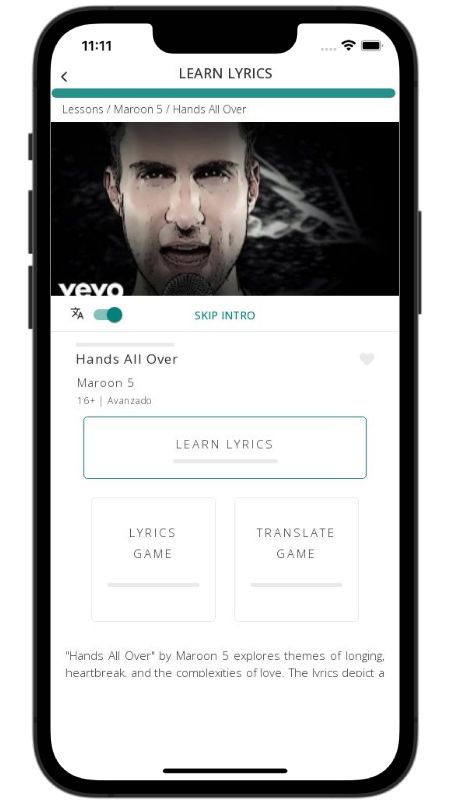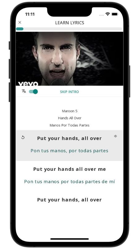 In addition to reading lyric translations, you can now learn English with music and lyrics from your favorite artists.