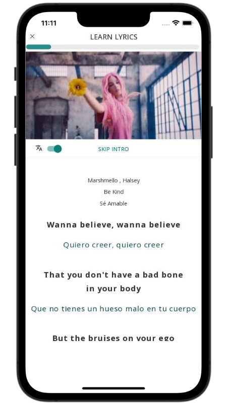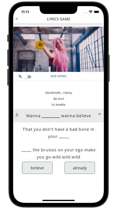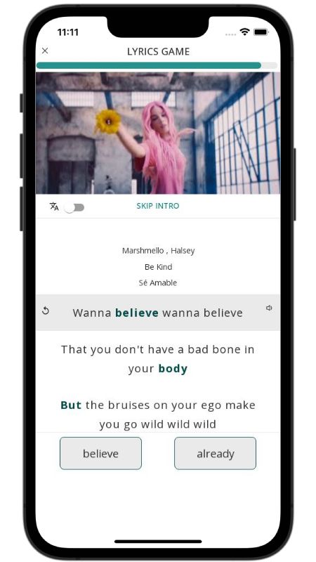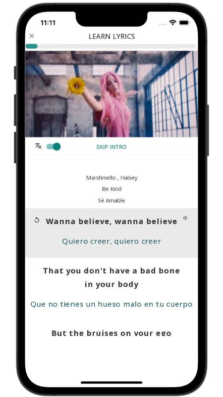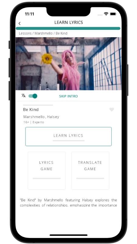 In addition to reading lyric translations, you can now learn English with music and lyrics from your favorite artists.