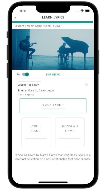 In addition to reading lyric translations, you can now learn English with music and lyrics from your favorite artists.