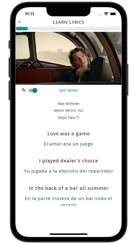 In addition to reading lyric translations, you can now learn English with music and lyrics from your favorite artists.