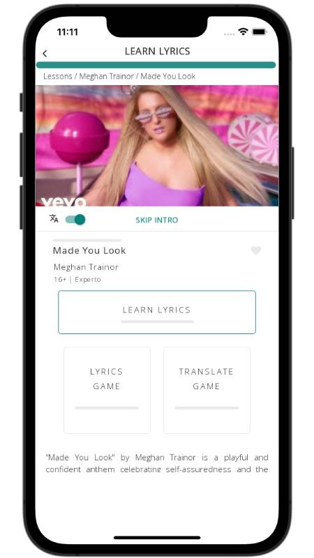 In addition to reading lyric translations, you can now learn English with music and lyrics from your favorite artists.