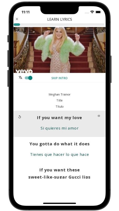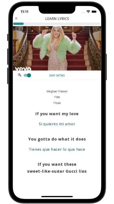 In addition to reading lyric translations, you can now learn English with music and lyrics from your favorite artists.