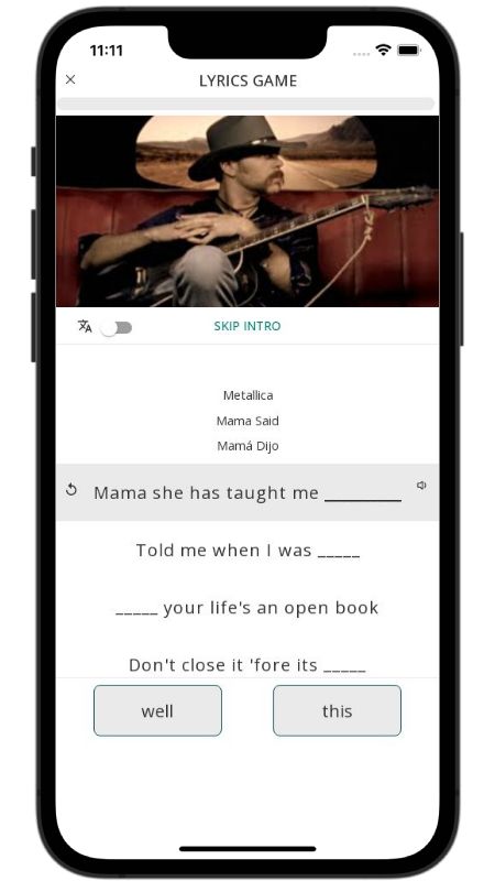 In addition to reading lyric translations, you can now learn English with music and lyrics from your favorite artists.