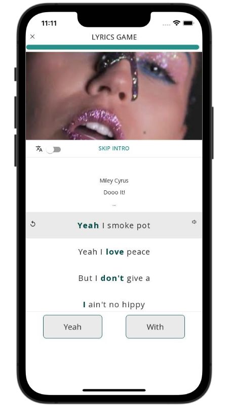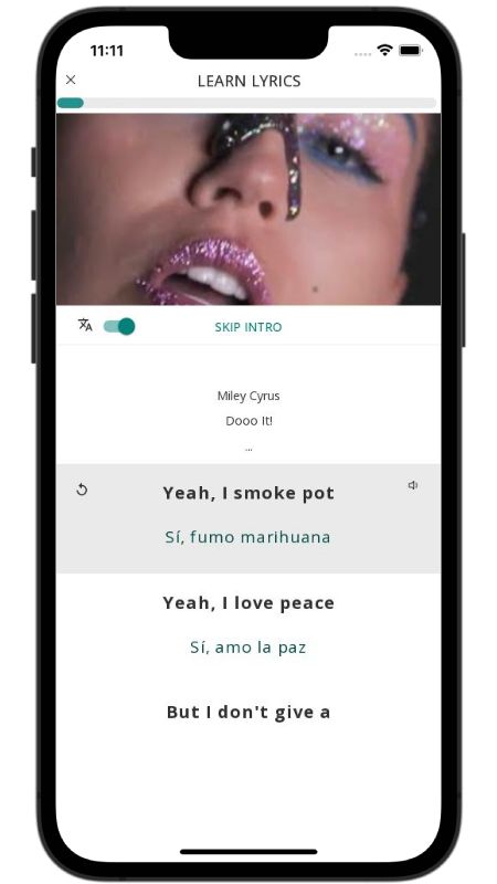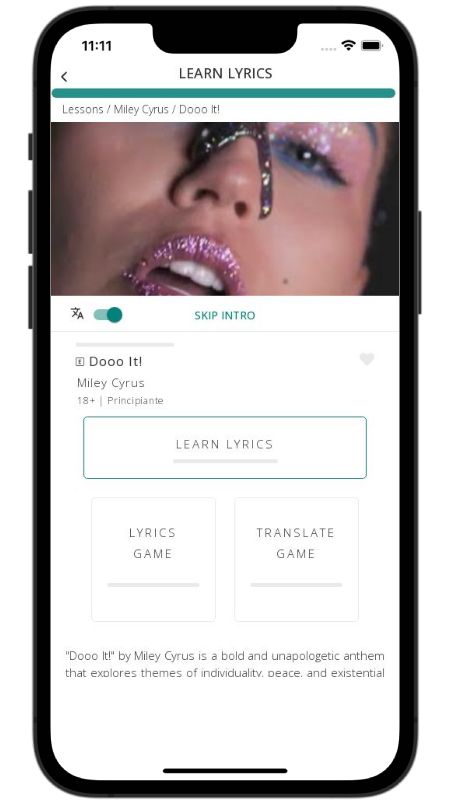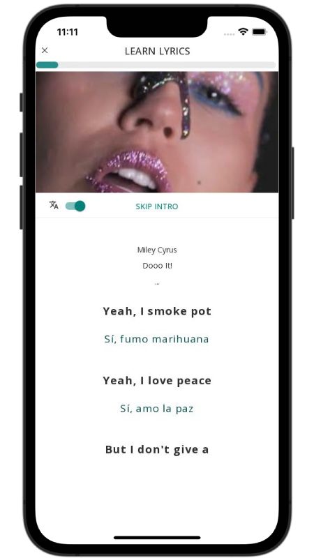 In addition to reading lyric translations, you can now learn English with music and lyrics from your favorite artists.