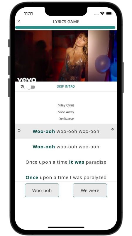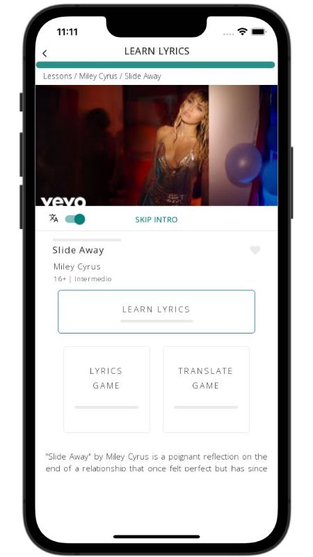 In addition to reading lyric translations, you can now learn English with music and lyrics from your favorite artists.