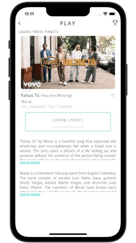 In addition to reading lyric translations, you can now learn Spanish with music and lyrics from your favorite artists.