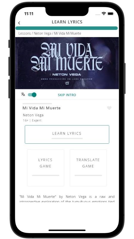 In addition to reading lyric translations, you can now learn Spanish with music and lyrics from your favorite artists.