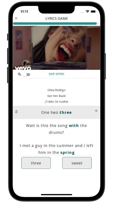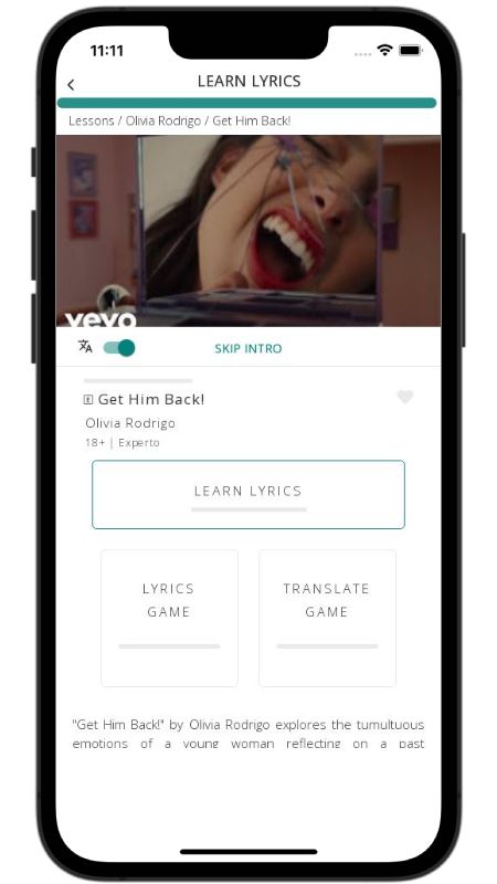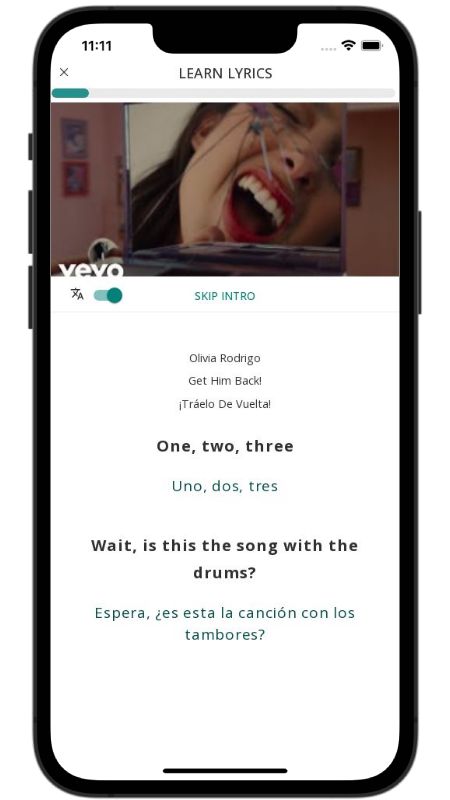 In addition to reading lyric translations, you can now learn English with music and lyrics from your favorite artists.