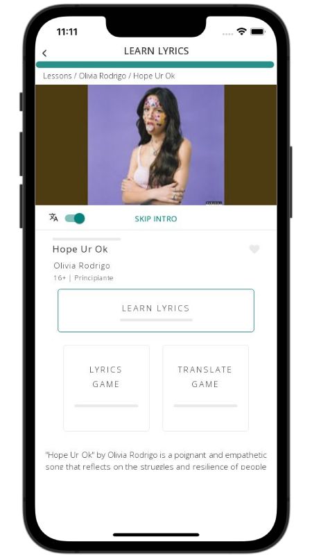 In addition to reading lyric translations, you can now learn English with music and lyrics from your favorite artists.