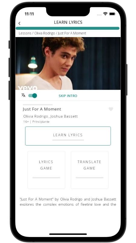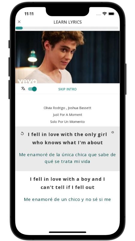 In addition to reading lyric translations, you can now learn English with music and lyrics from your favorite artists.