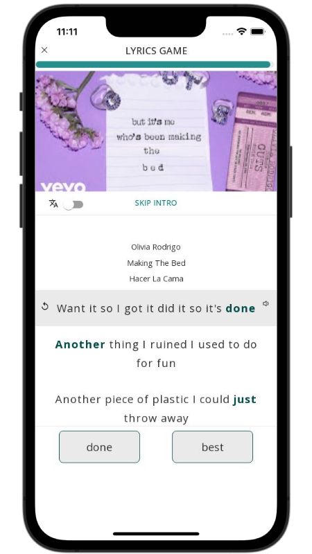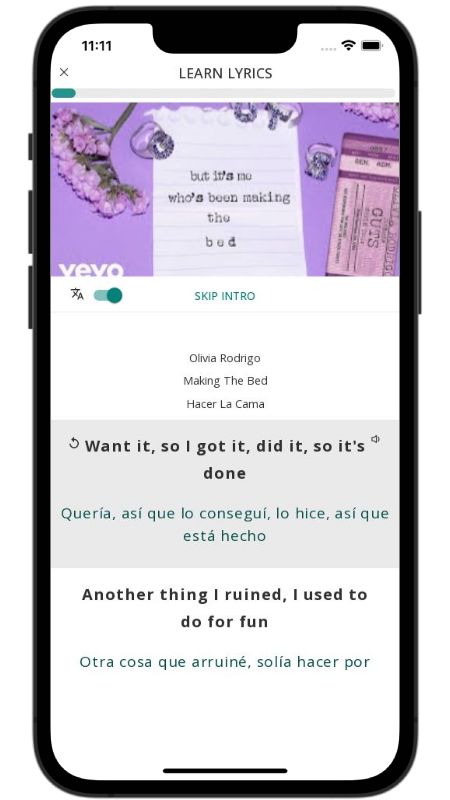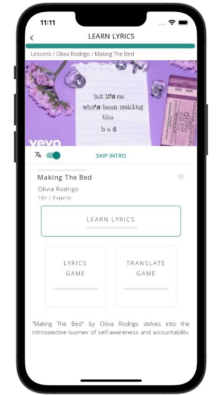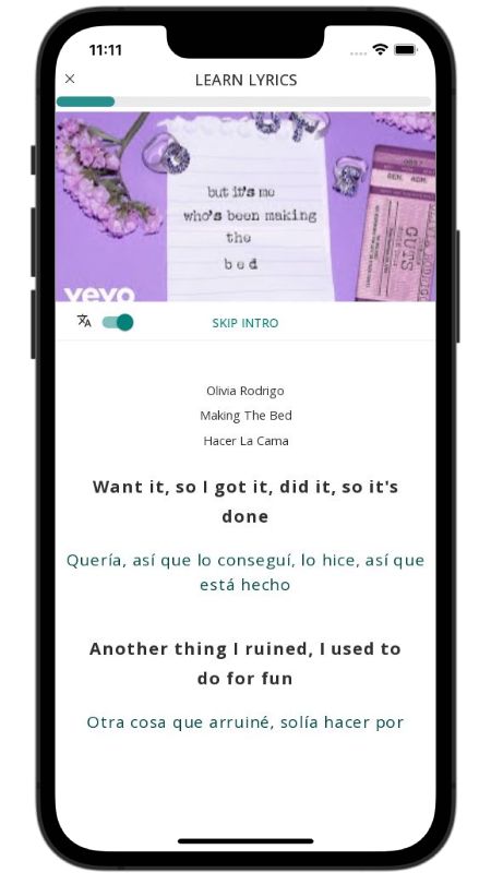In addition to reading lyric translations, you can now learn English with music and lyrics from your favorite artists.