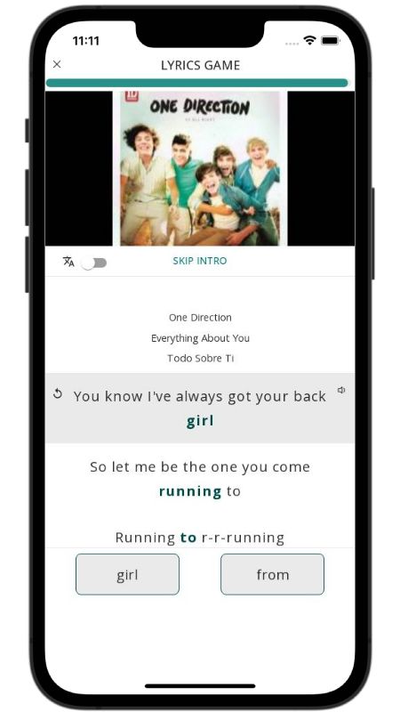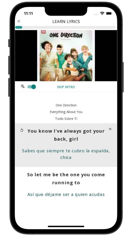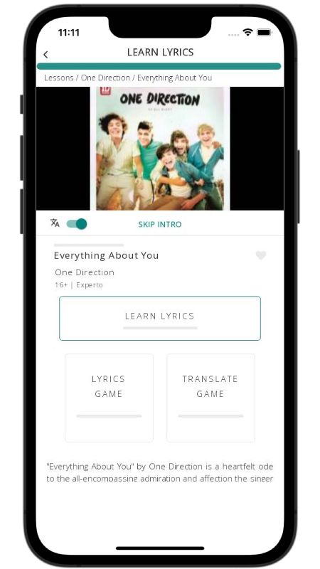 In addition to reading lyric translations, you can now learn English with music and lyrics from your favorite artists.