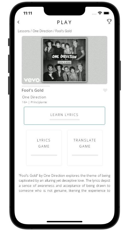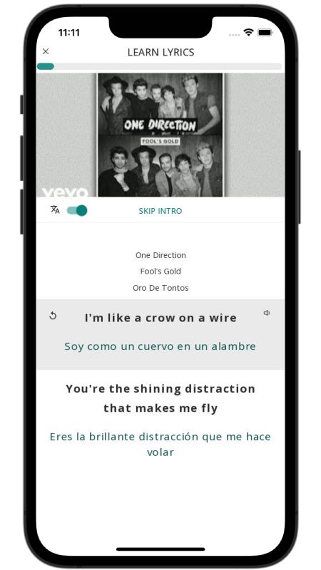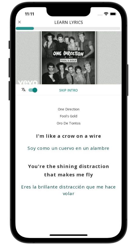 In addition to reading lyric translations, you can now learn English with music and lyrics from your favorite artists.