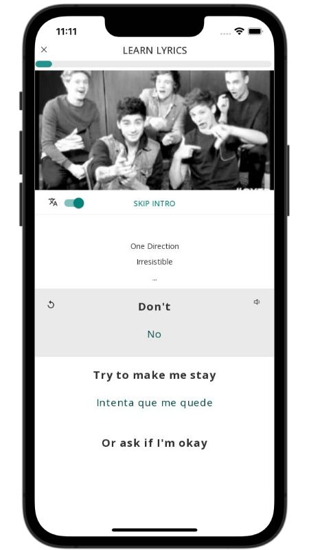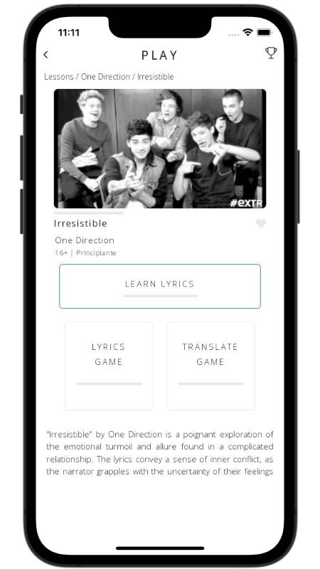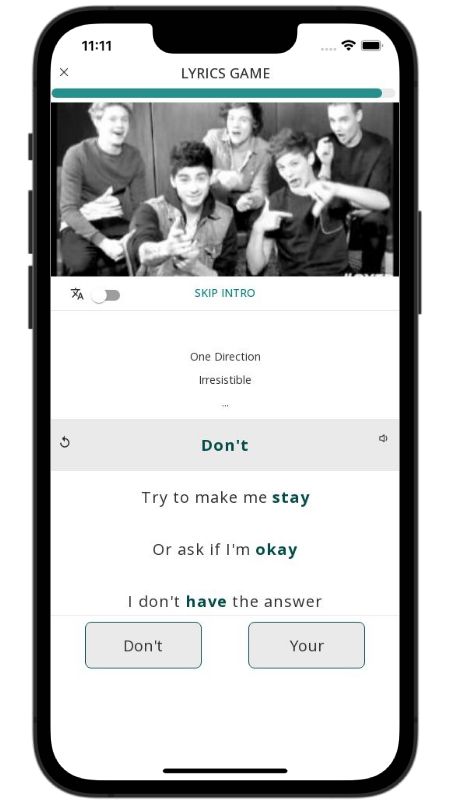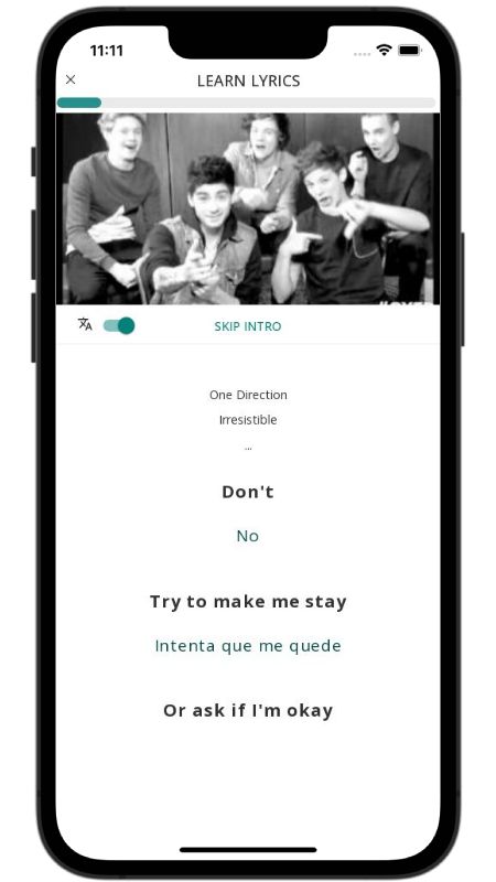 In addition to reading lyric translations, you can now learn English with music and lyrics from your favorite artists.