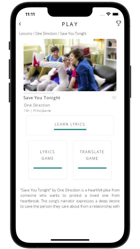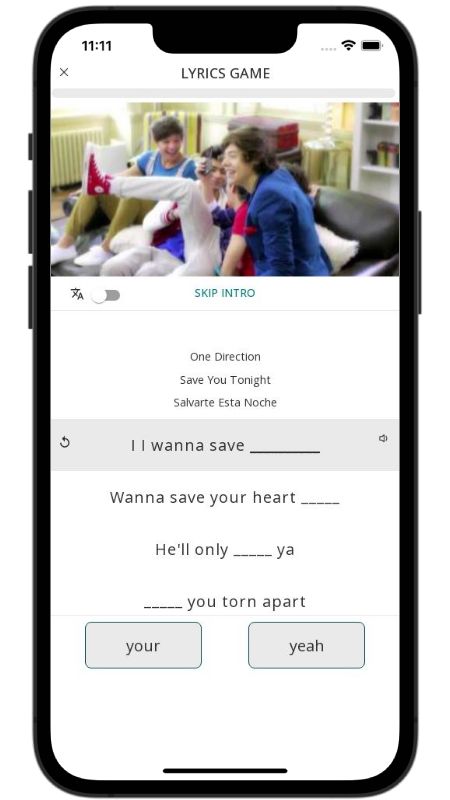 In addition to reading lyric translations, you can now learn English with music and lyrics from your favorite artists.