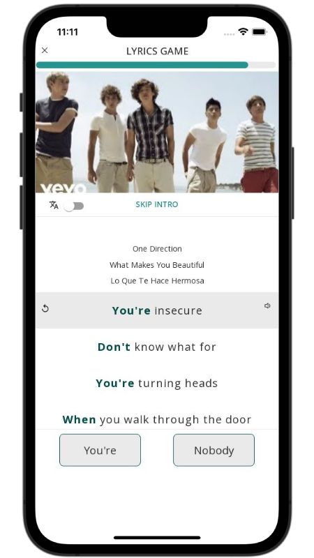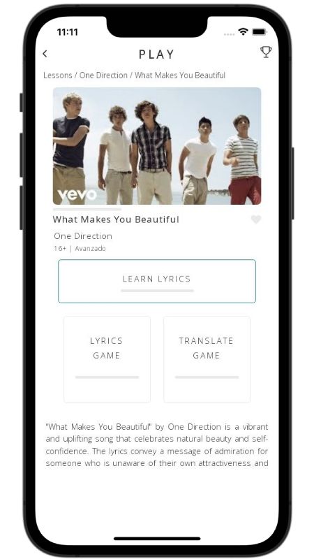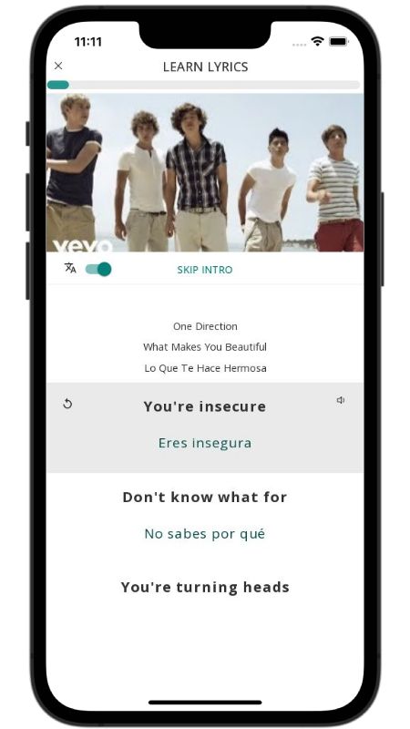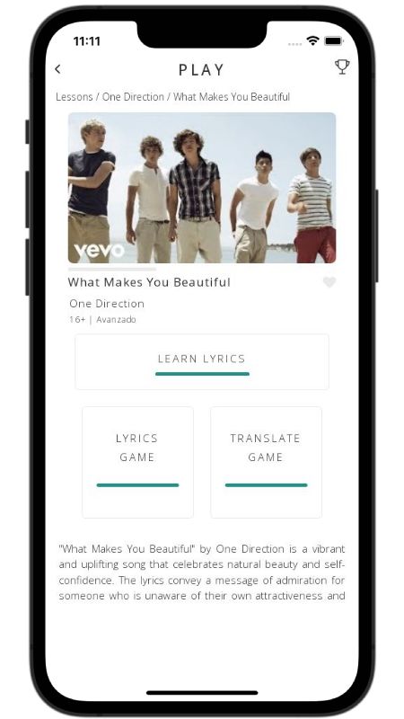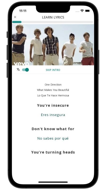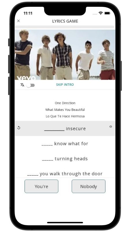 In addition to reading lyric translations, you can now learn English with music and lyrics from your favorite artists.
