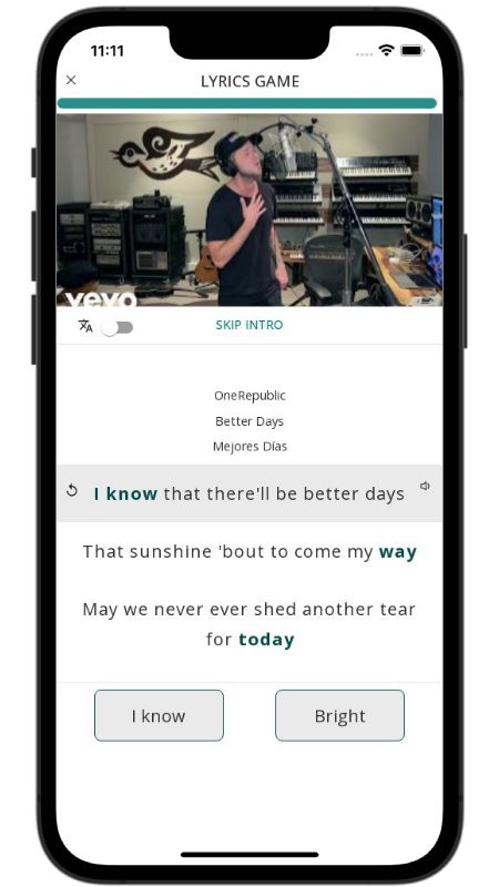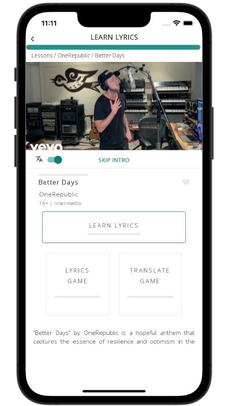 In addition to reading lyric translations, you can now learn English with music and lyrics from your favorite artists.