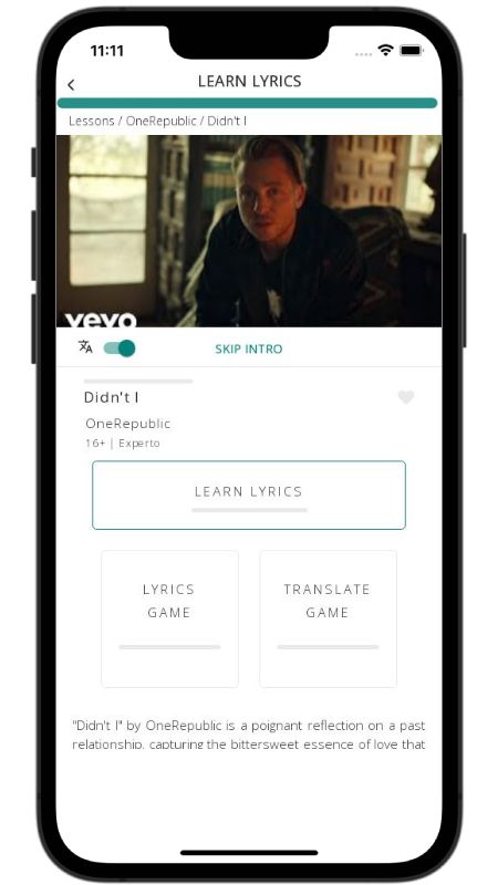 In addition to reading lyric translations, you can now learn English with music and lyrics from your favorite artists.